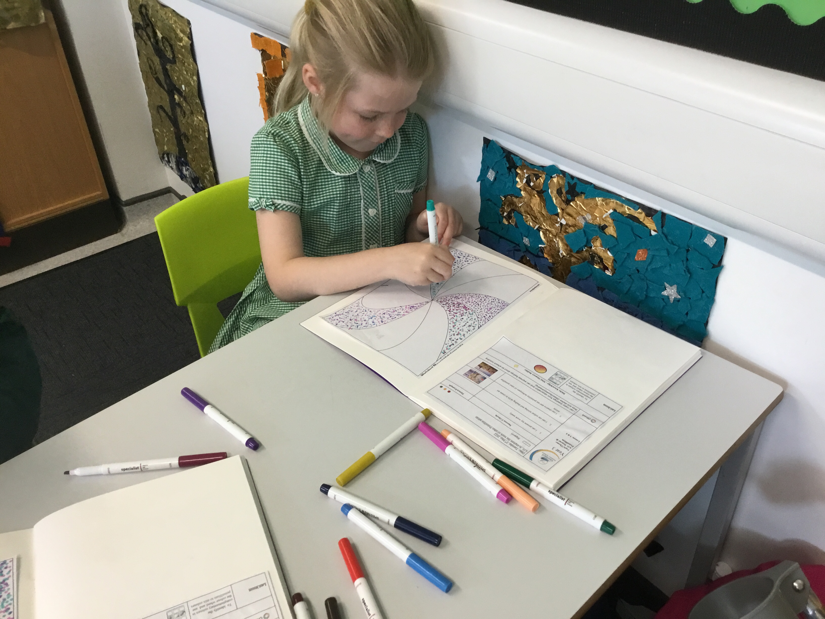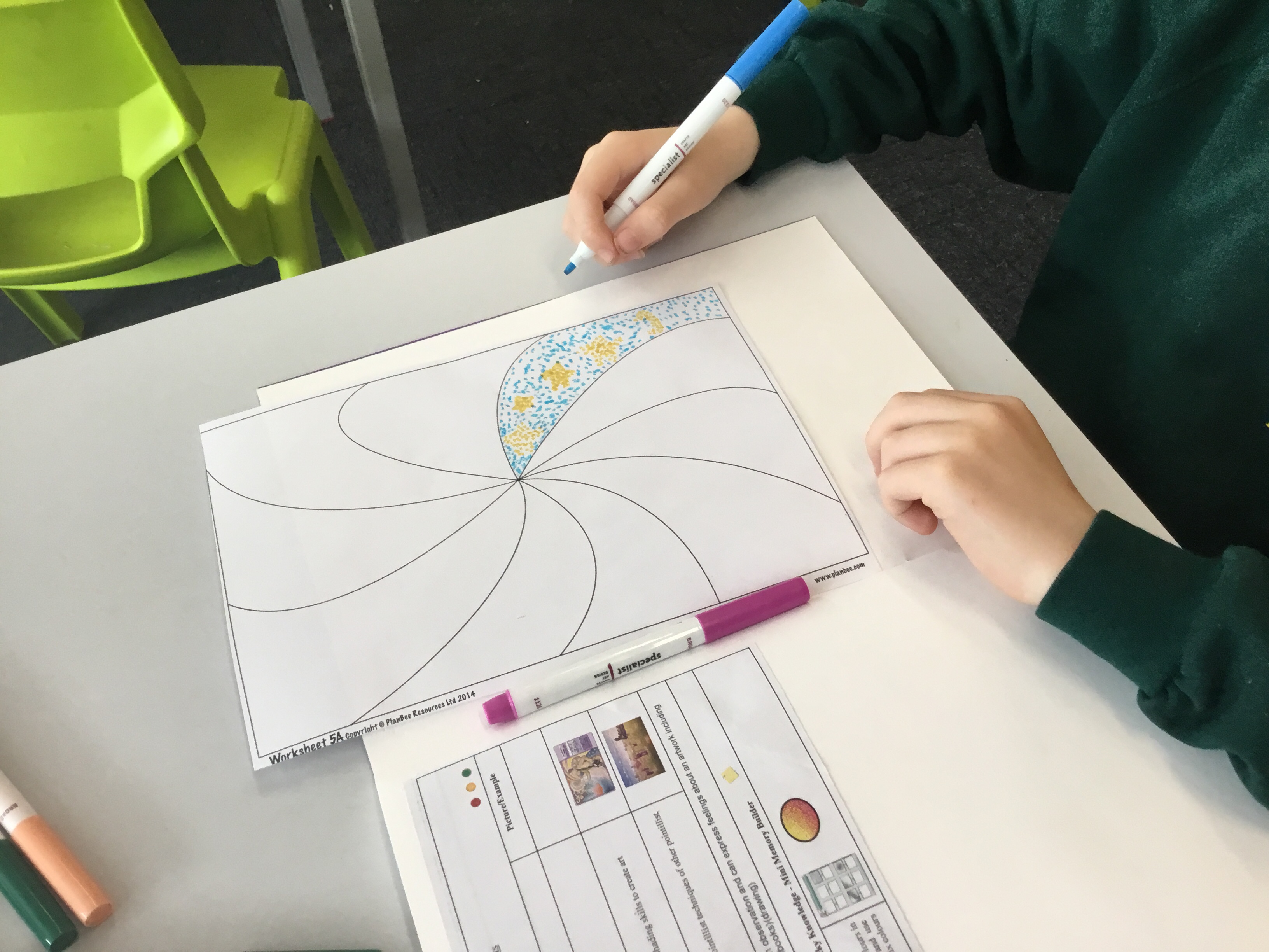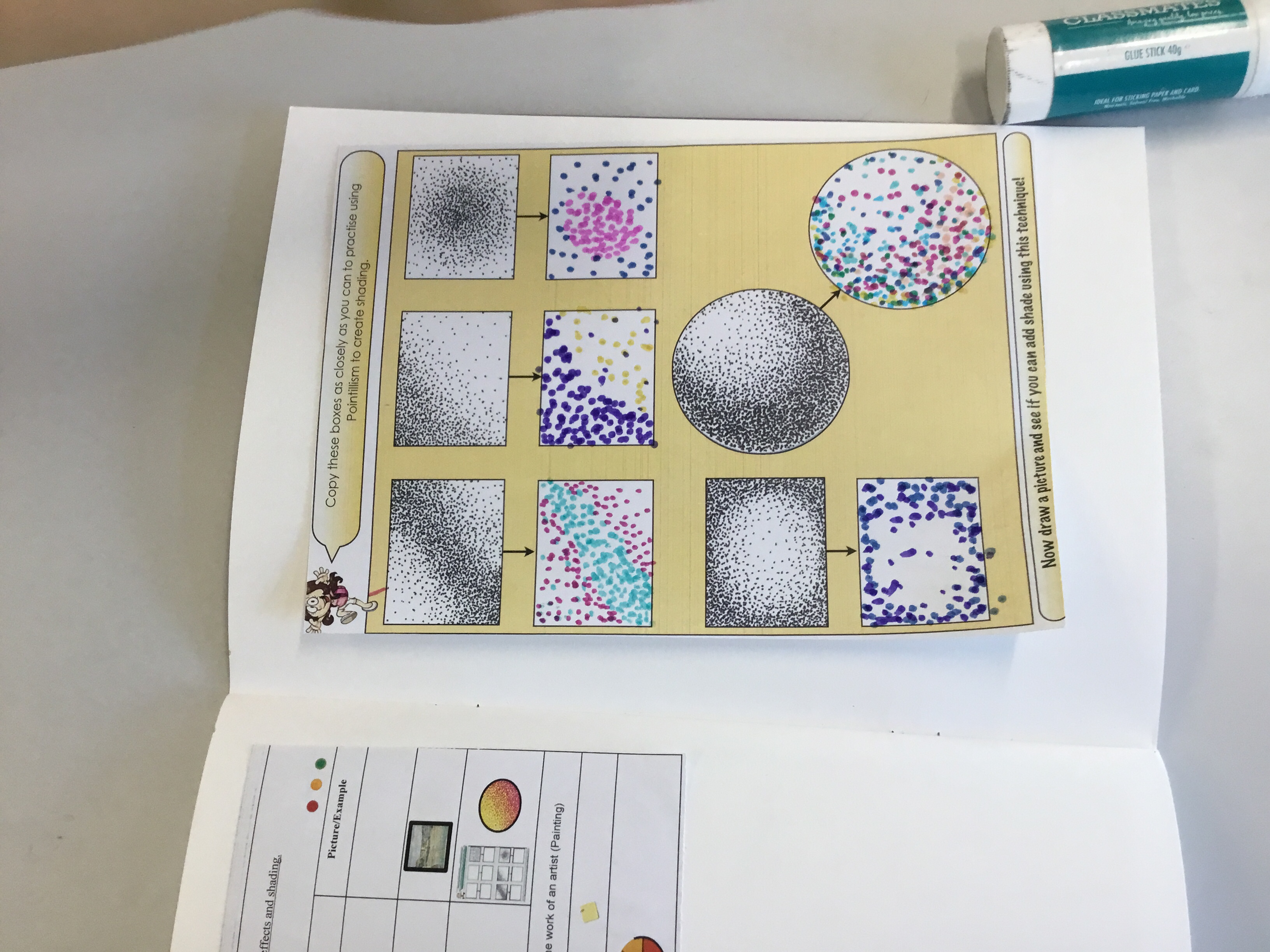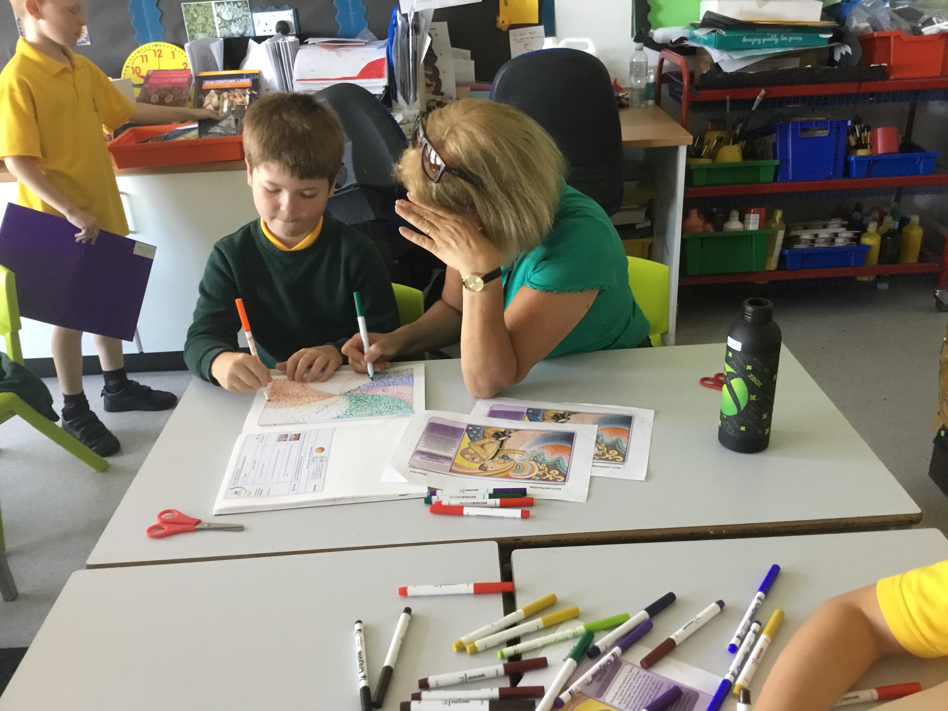 Year 3 used cotton buds and paintbrushes to paint dots to create their paintings. They used the tips of their brushes as well as the end. All these methods created different effects. Still very much a work in progress.