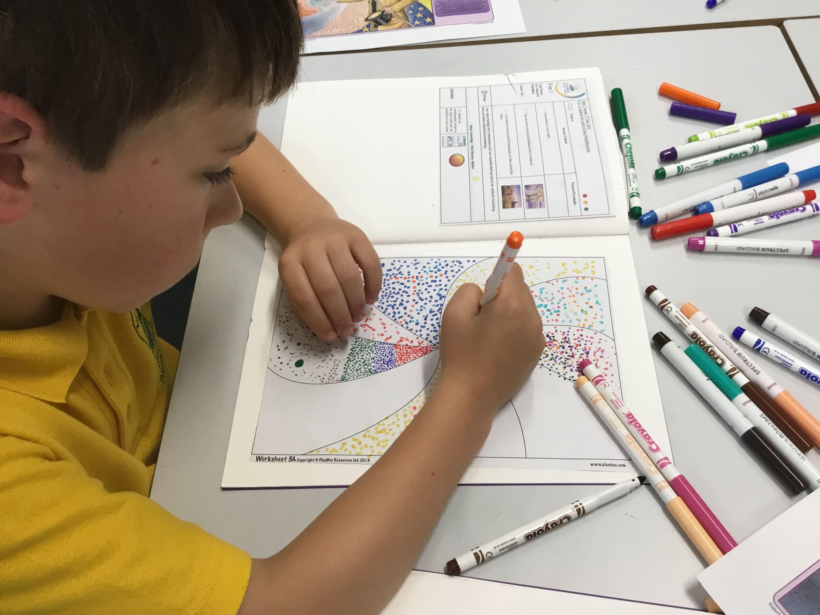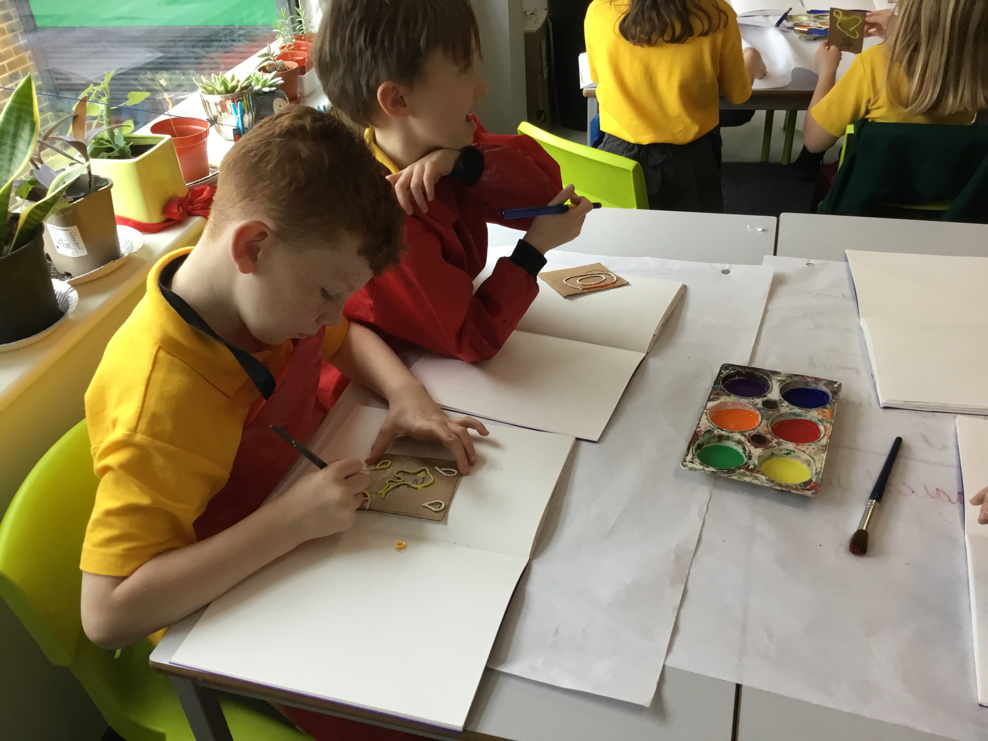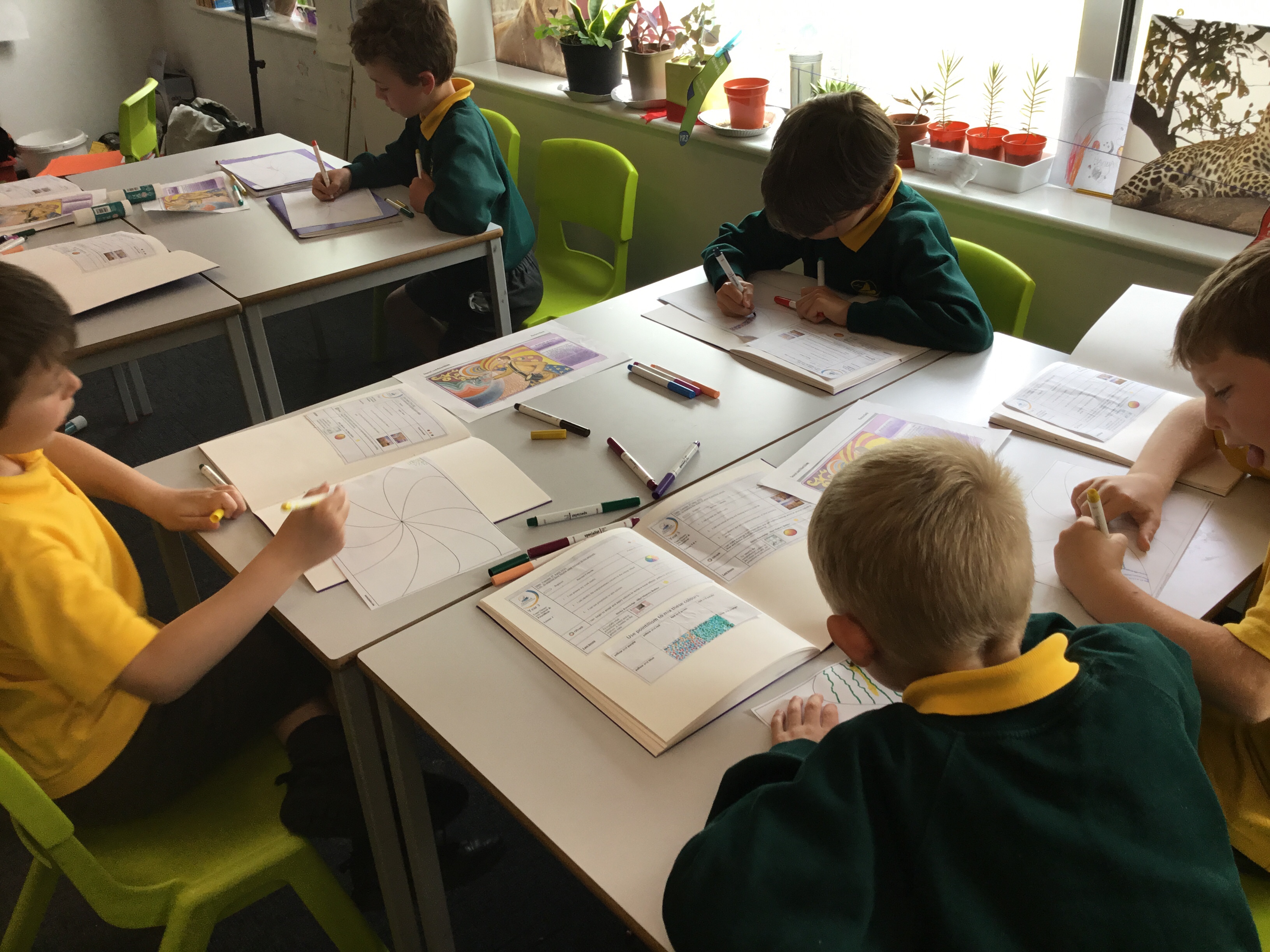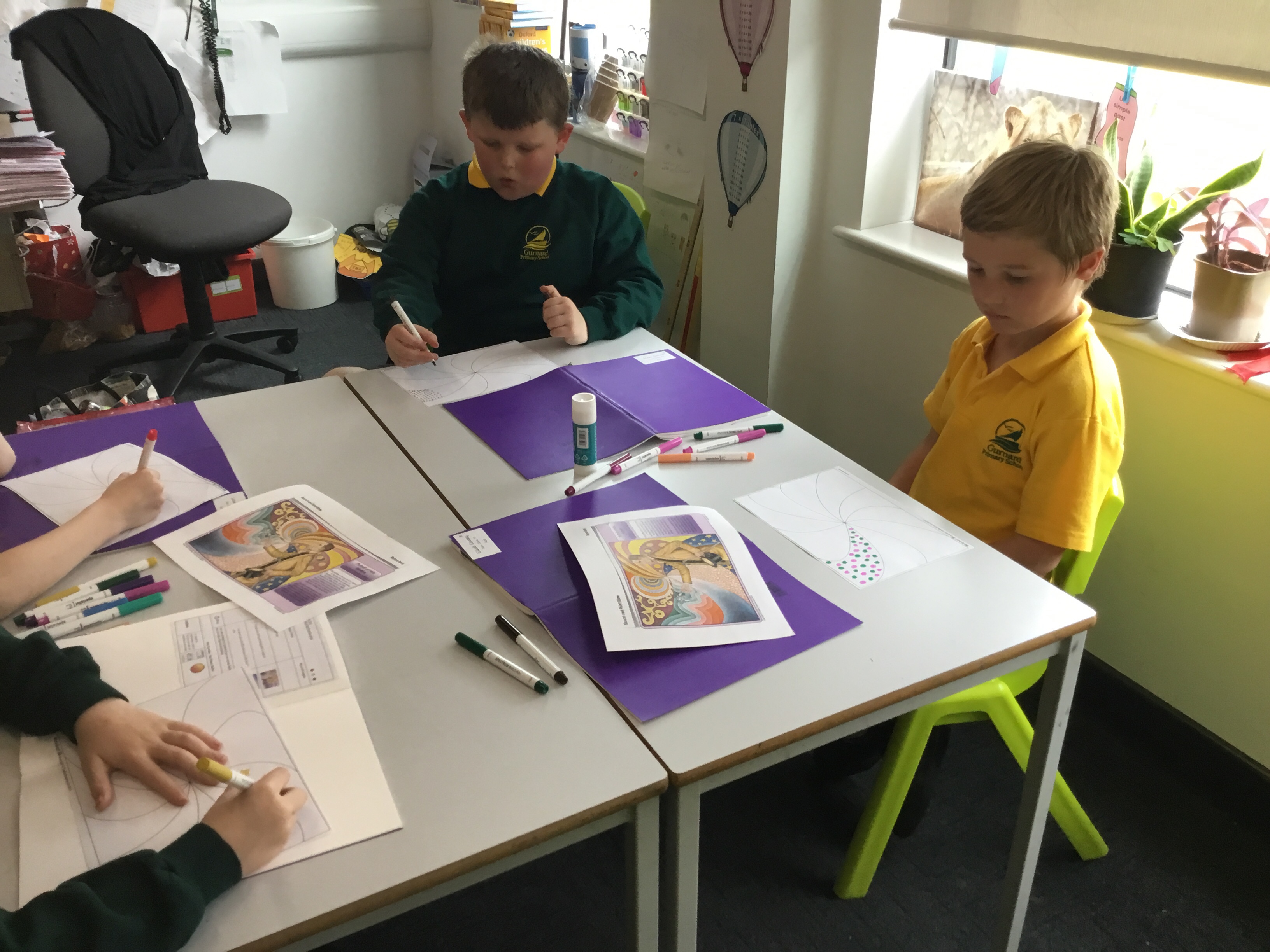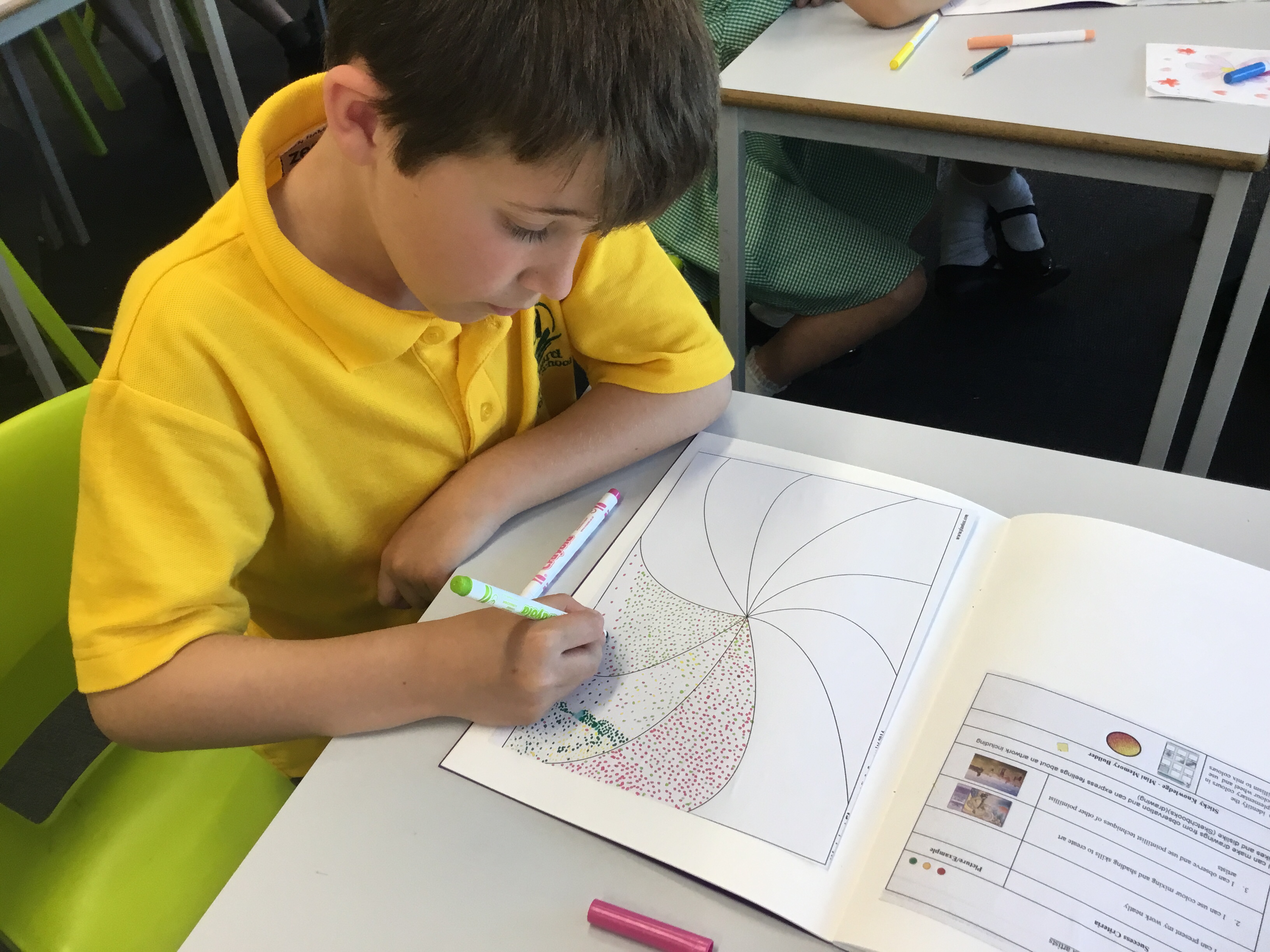 Year 3 used cotton buds and paintbrushes to paint dots to create their paintings. They used the tips of their brushes as well as the end. All these methods created different effects. Still very much a work in progress.