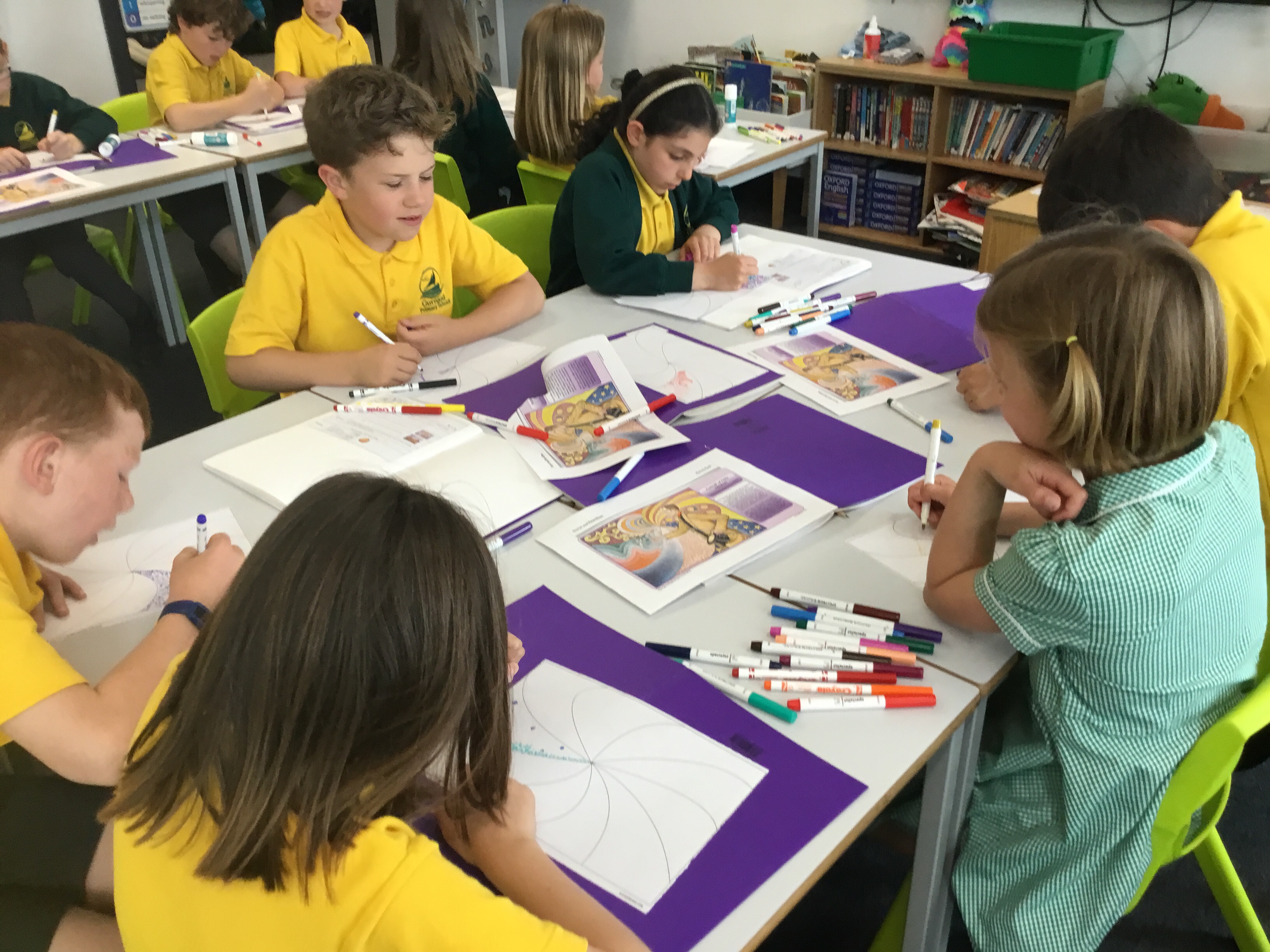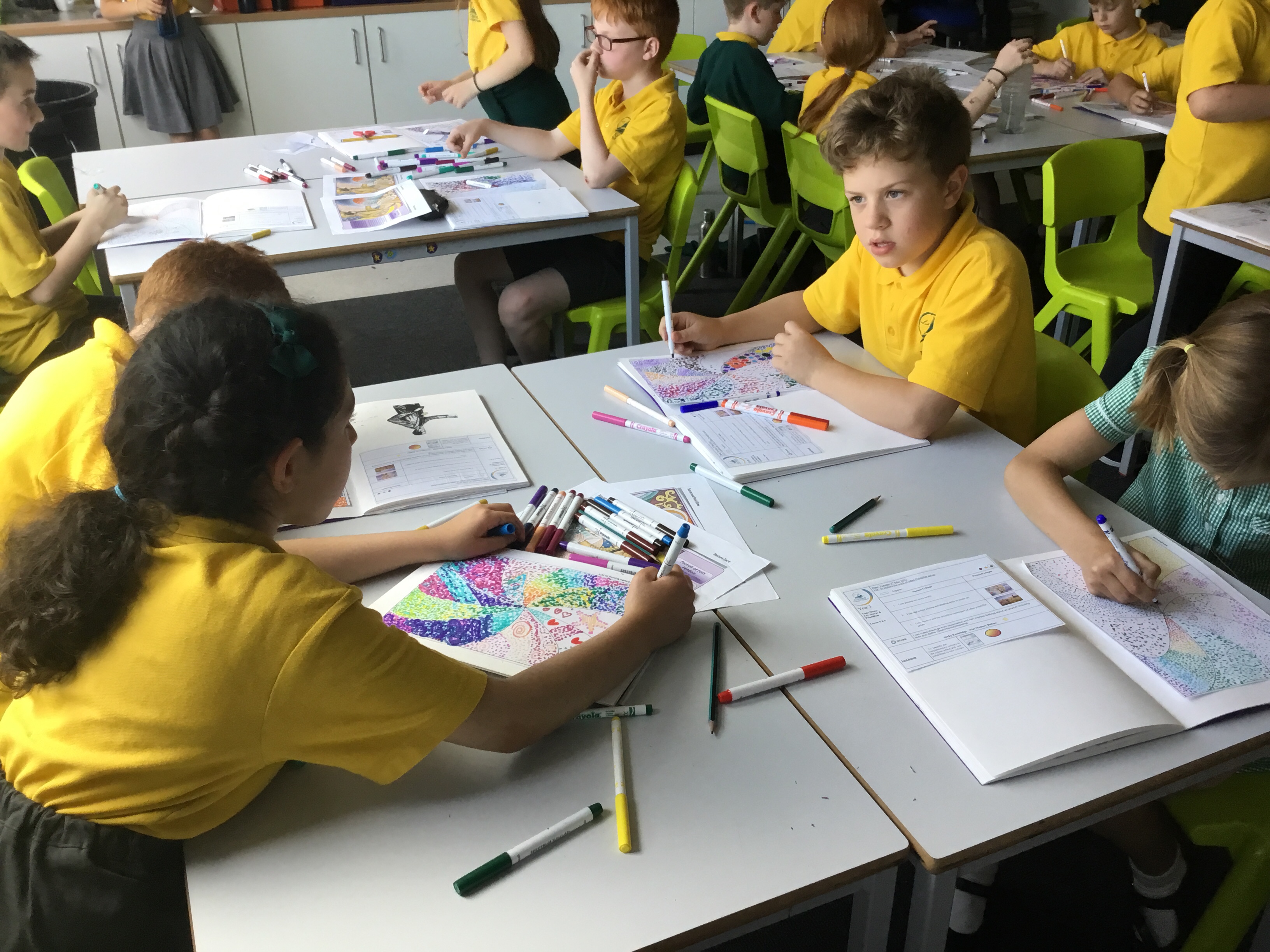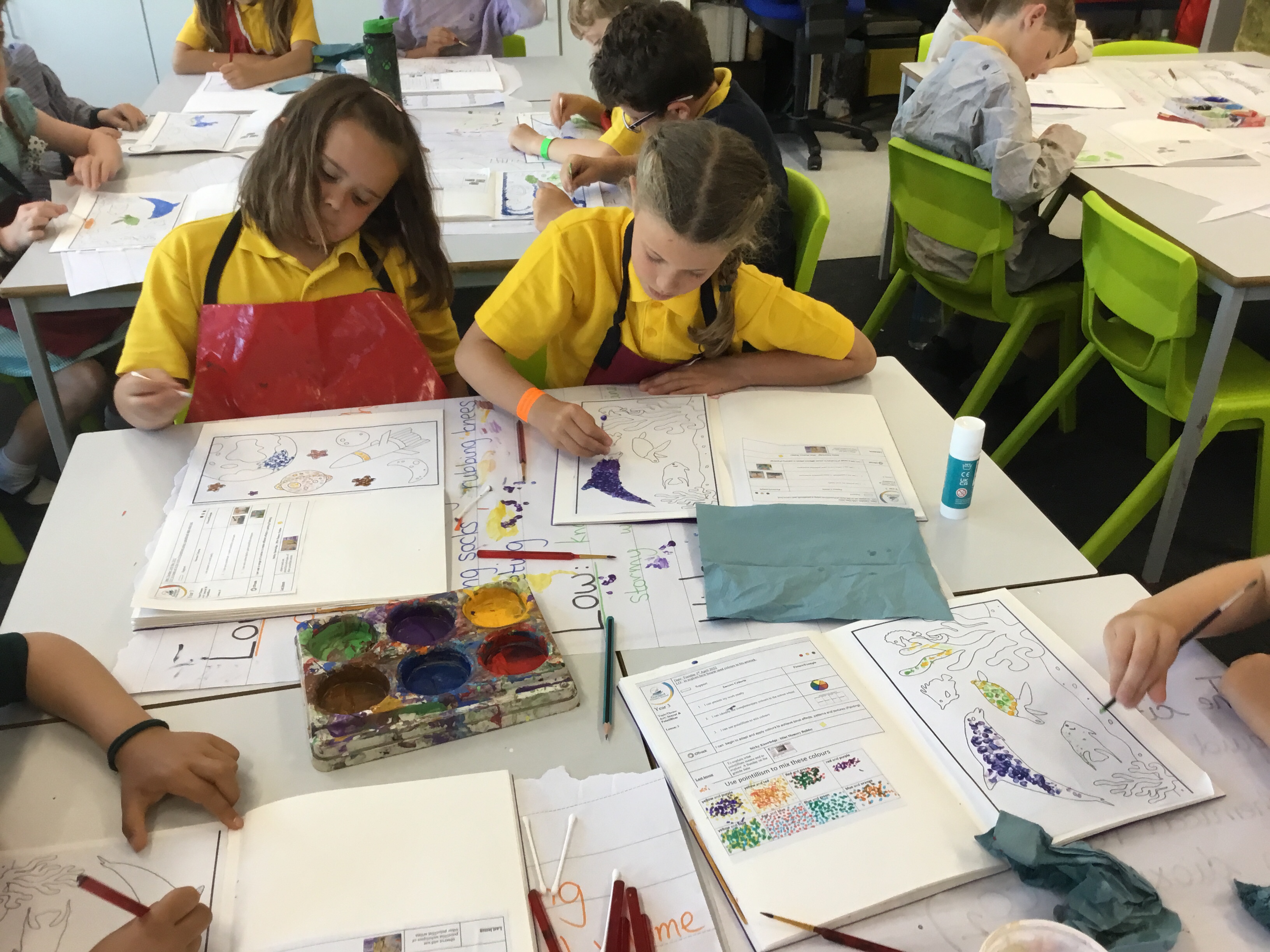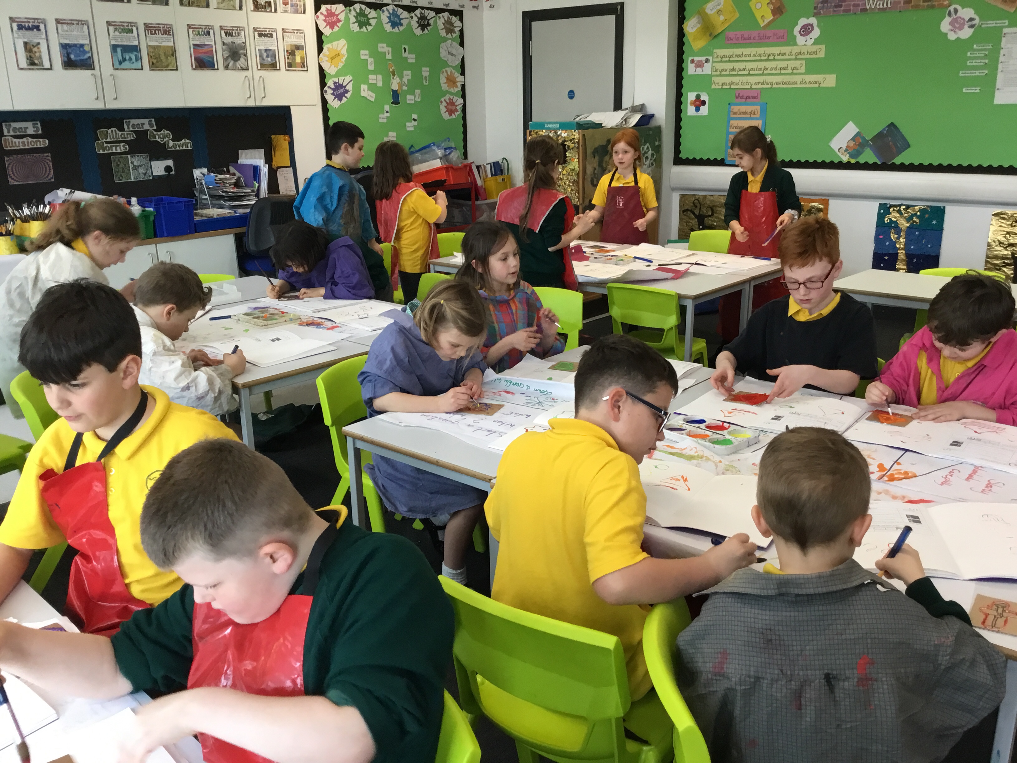 Year 3 used cotton buds and paintbrushes to paint dots to create their paintings. They used the tips of their brushes as well as the end. All these methods created different effects. Still very much a work in progress.