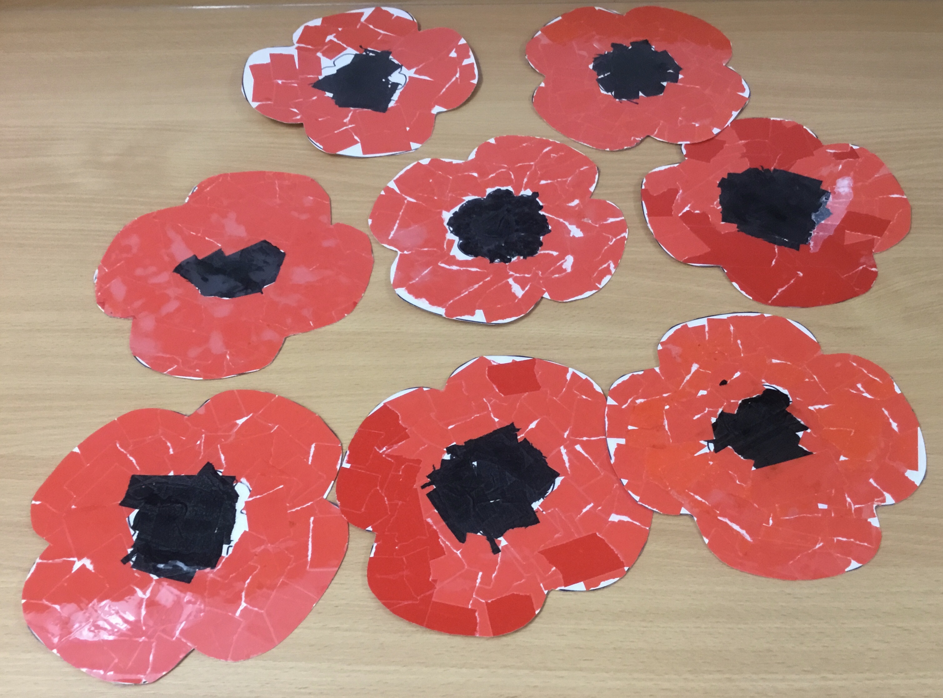 Year 3 had fun using collage techniques to create a piece of poppy art. They tore pieces of red paper and black crinkle paper to create their collage.