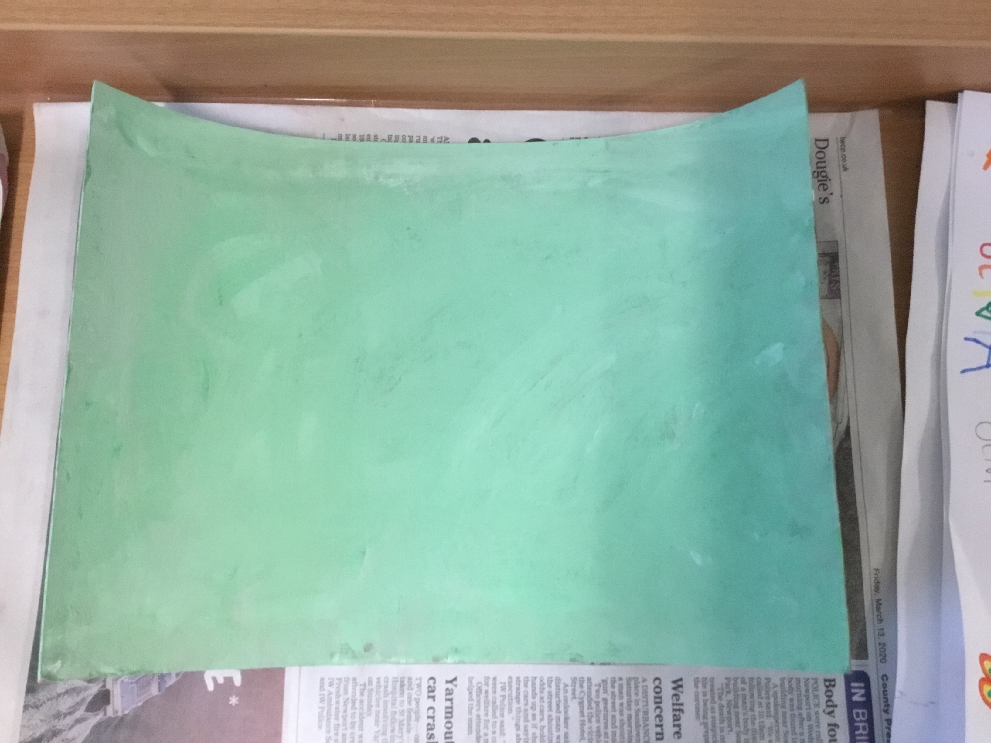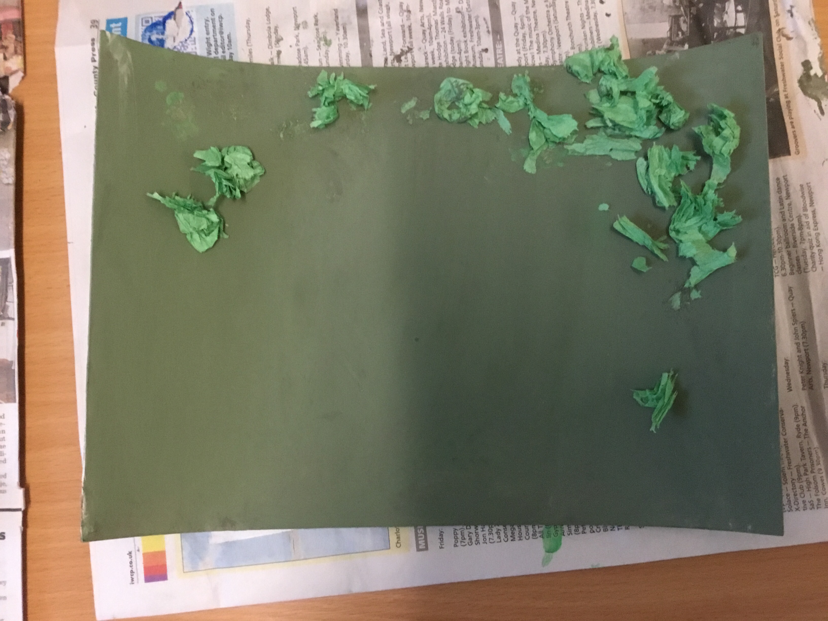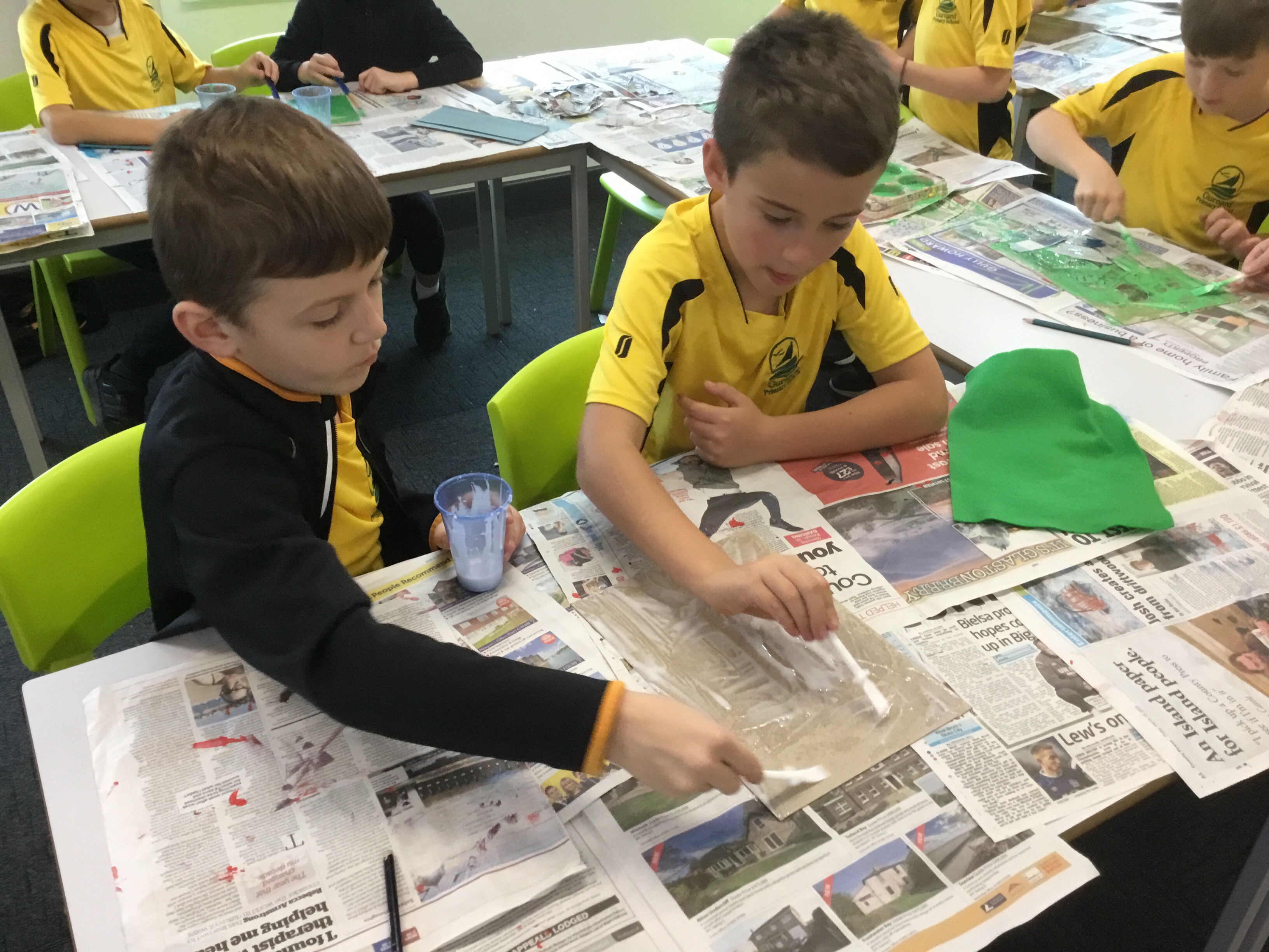 Year 3 worked with their partners to prepare their bases for their clay models of Stonehenge. They were given the choice of using paper mache with glue and green paint, painting , using felt and tissue paper and covering their board with paper, cellophane and tissue paper.