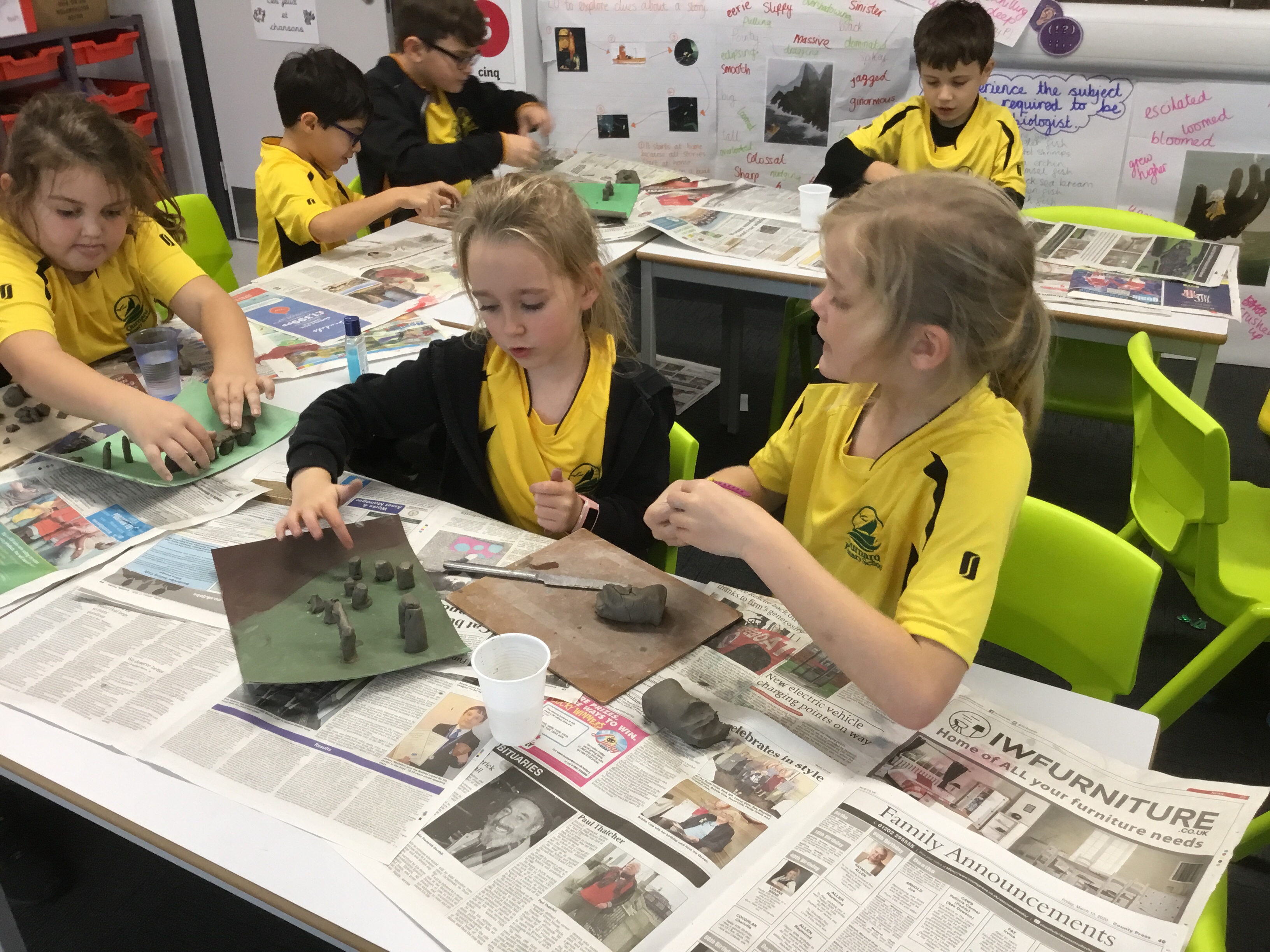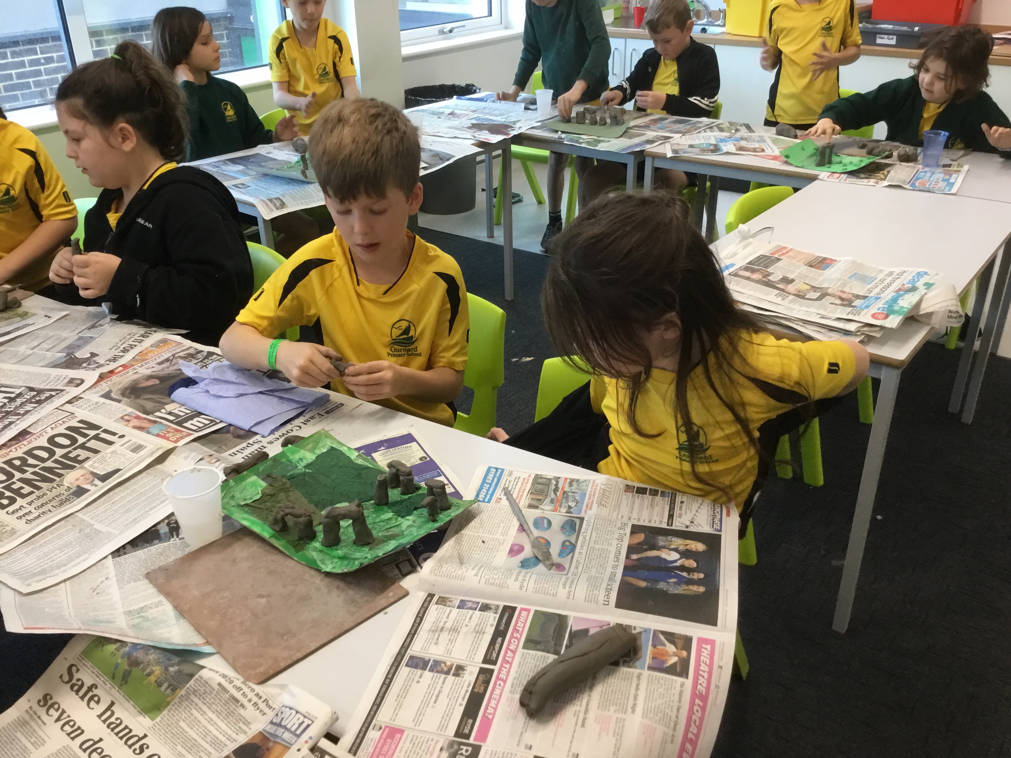 Year 3 had fun creating their clay models of Stonehenge. They needed to ensure that they used a slip to ‘glue’ pieces together and that their models were stable on the bases.